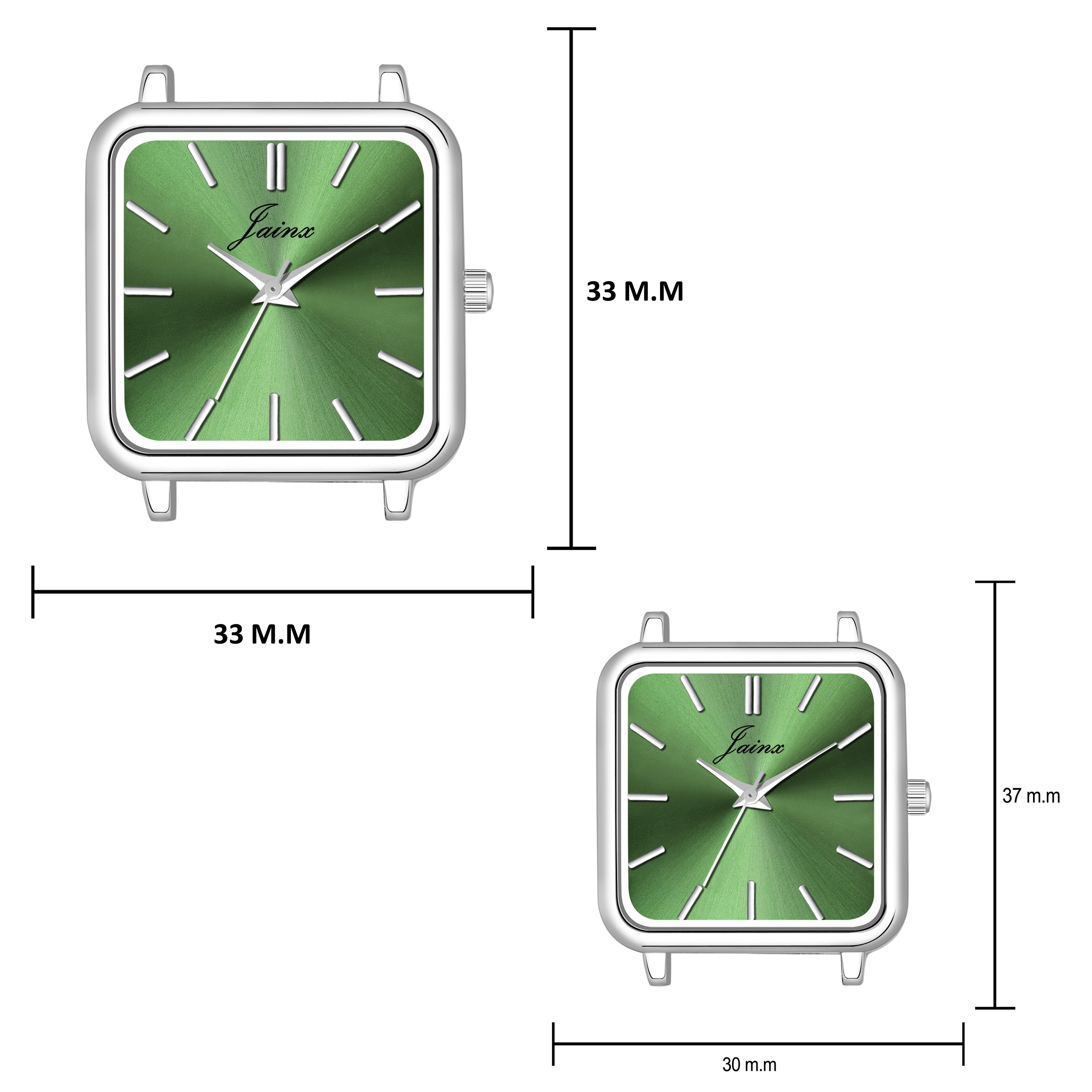 Jainx Minimalist Square Dial Steel Chain Gift Set Analog Watch for Couple JC9409