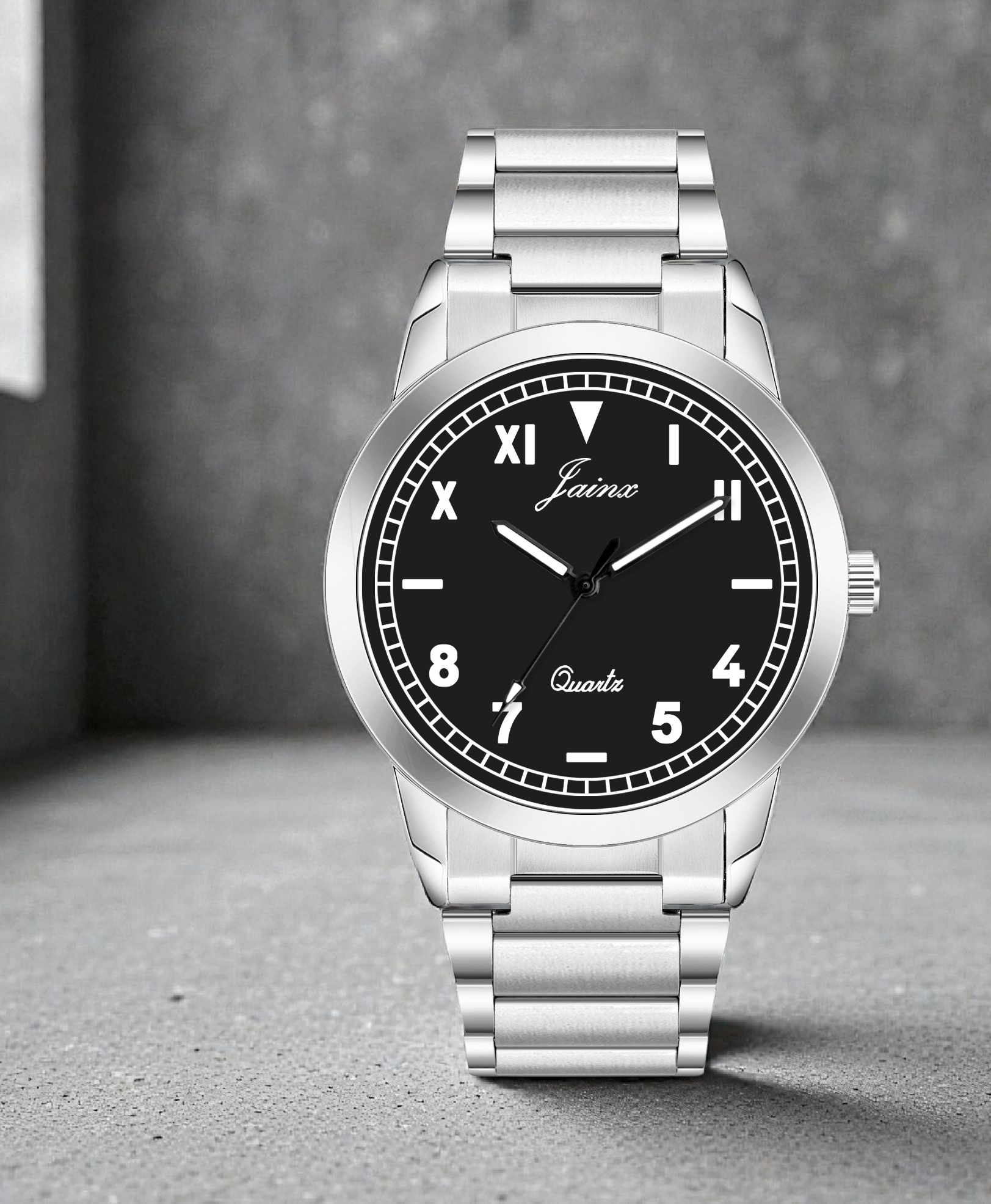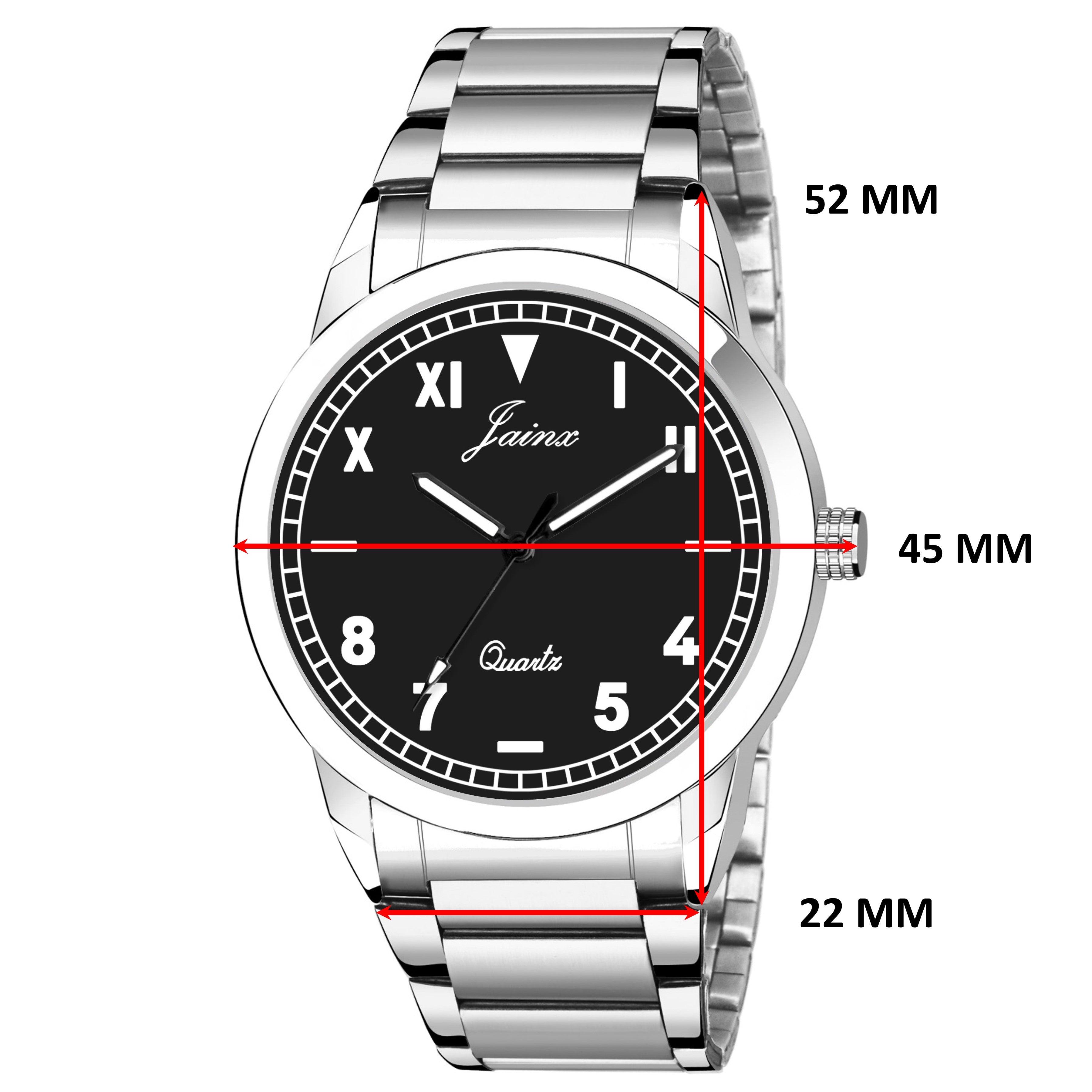 Jainx Classic Black Dial Silver Steel Chain Analog Wrist Watch for Men - JM7238