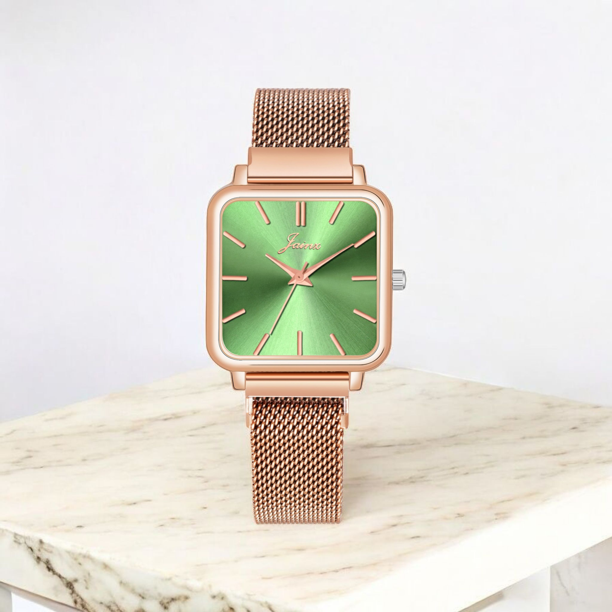 Jainx Green Dial Mesh Rose Gold Magnet Chain Analog Watch for Women JW8639