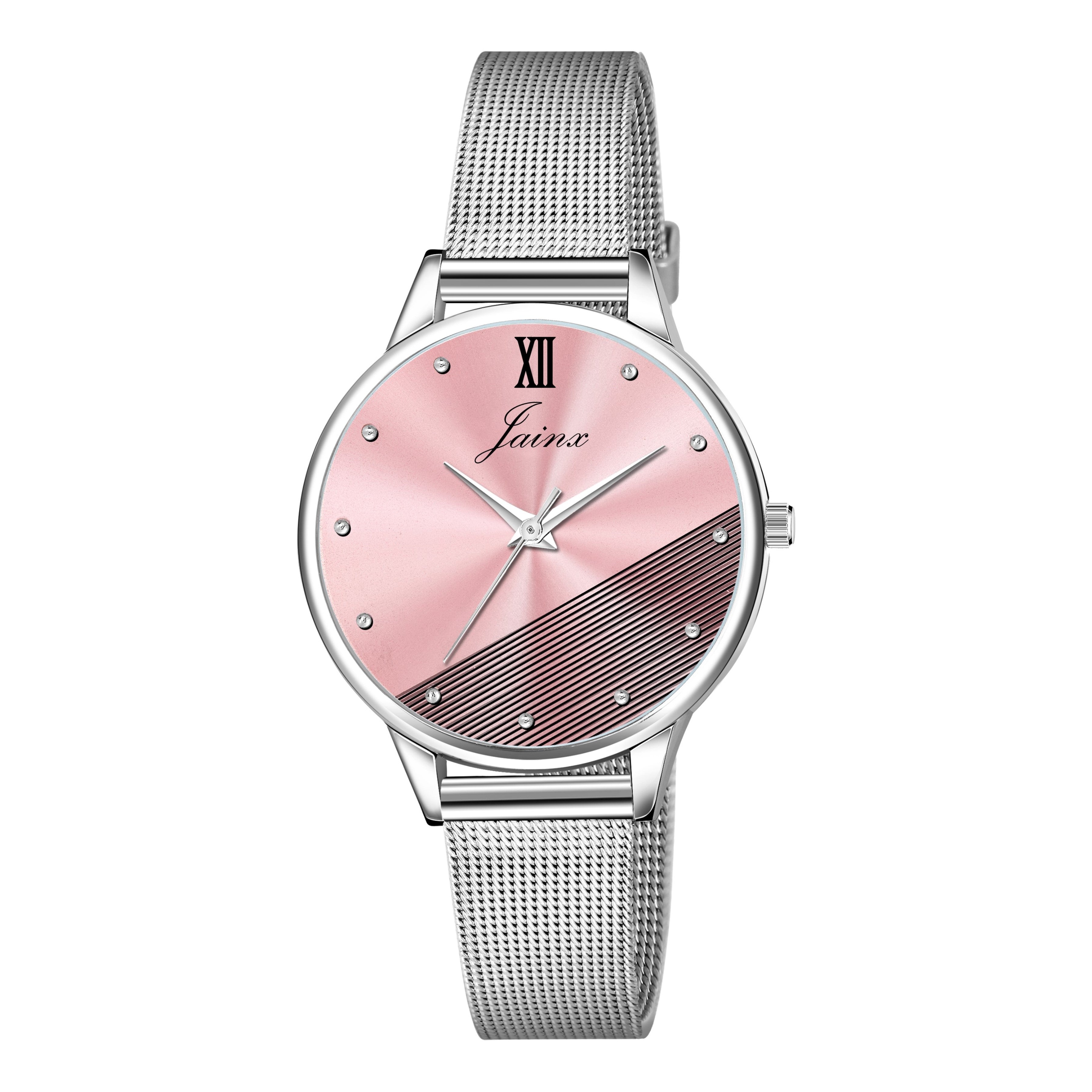 Jainx Pink Dial Steel Mesh Chain Analog Watch - for Women JW8635