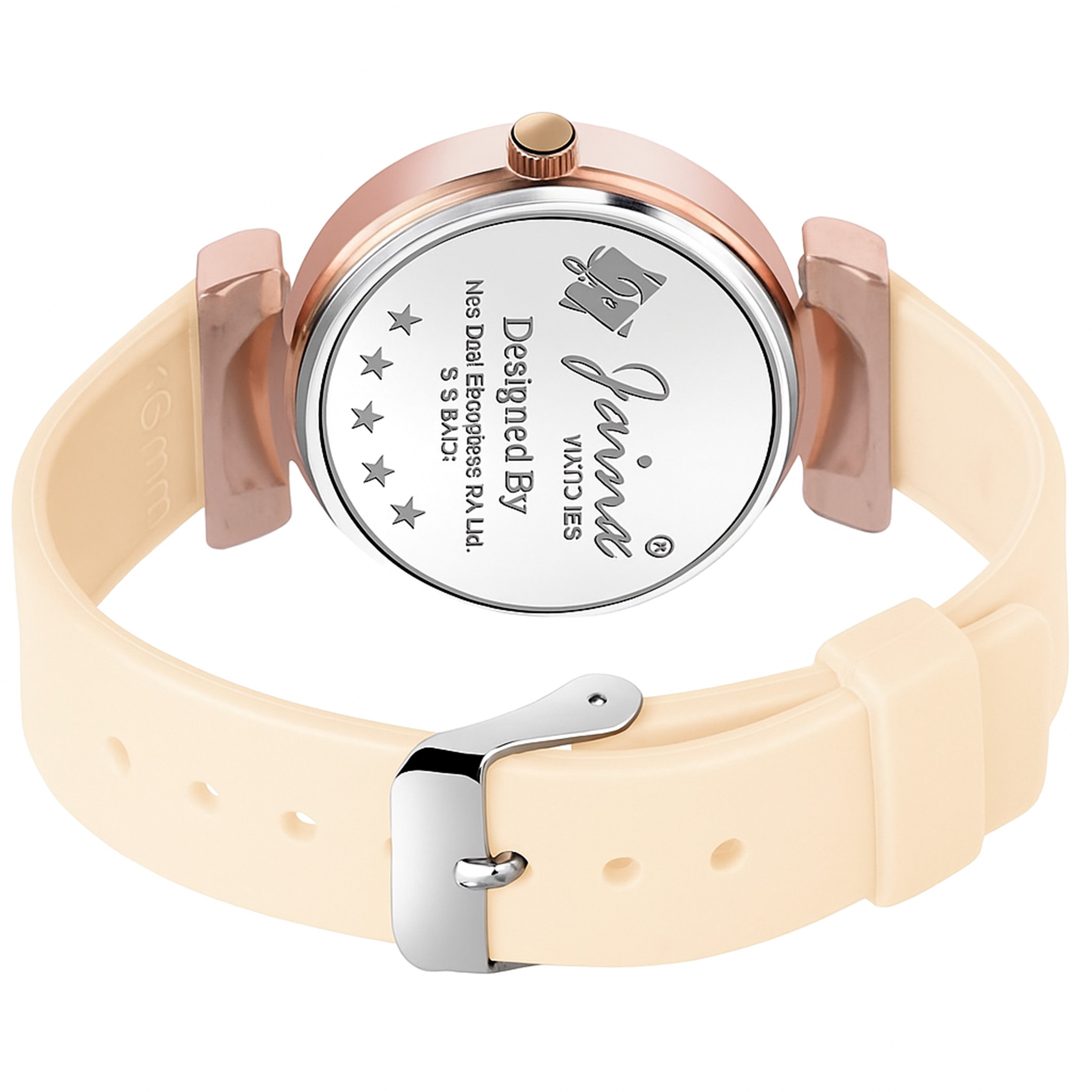 Jainx Beige Silicone Band Analog Watch for Women JW8637