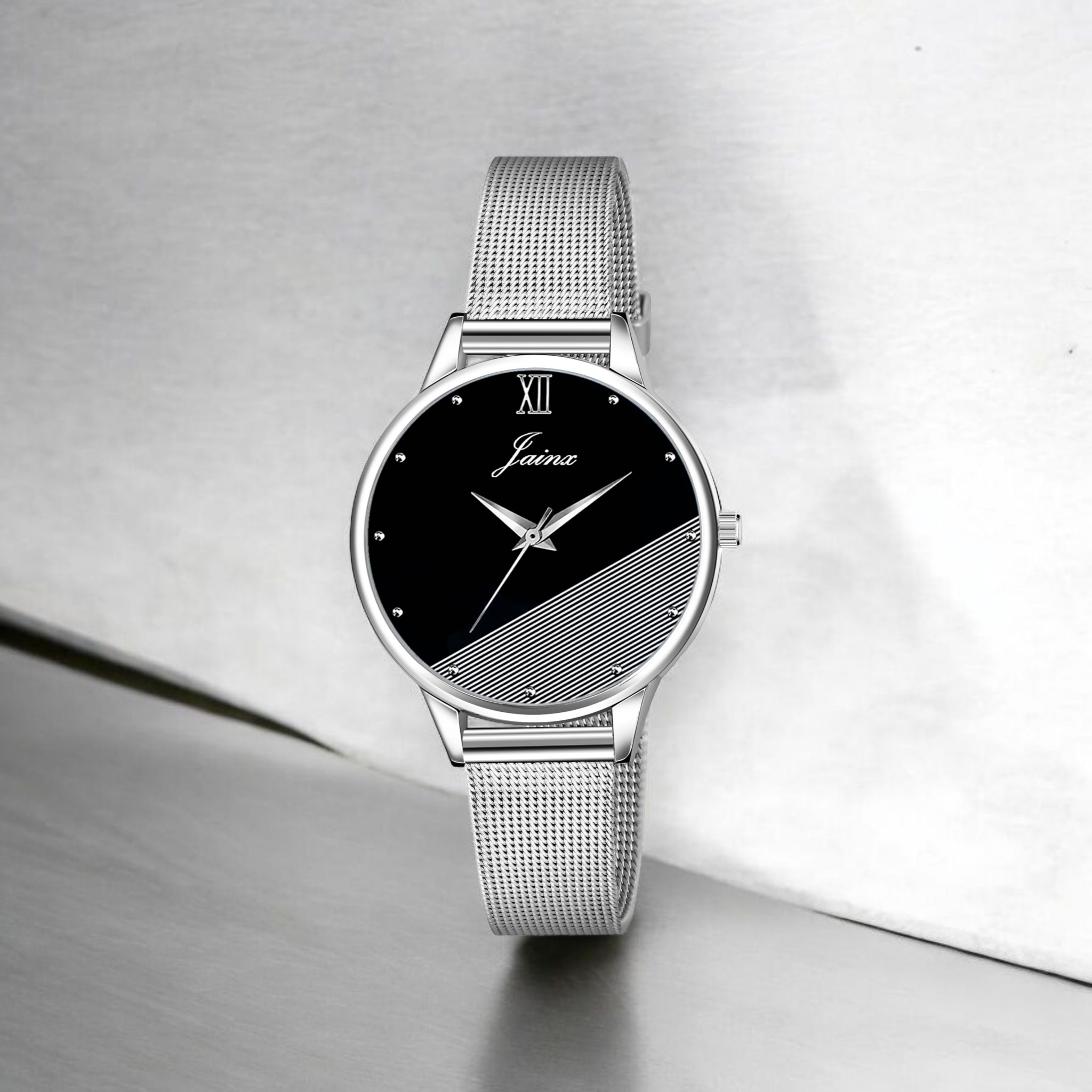 Jainx Black Dial Steel Mesh Chain Analog Watch for Women JW8636