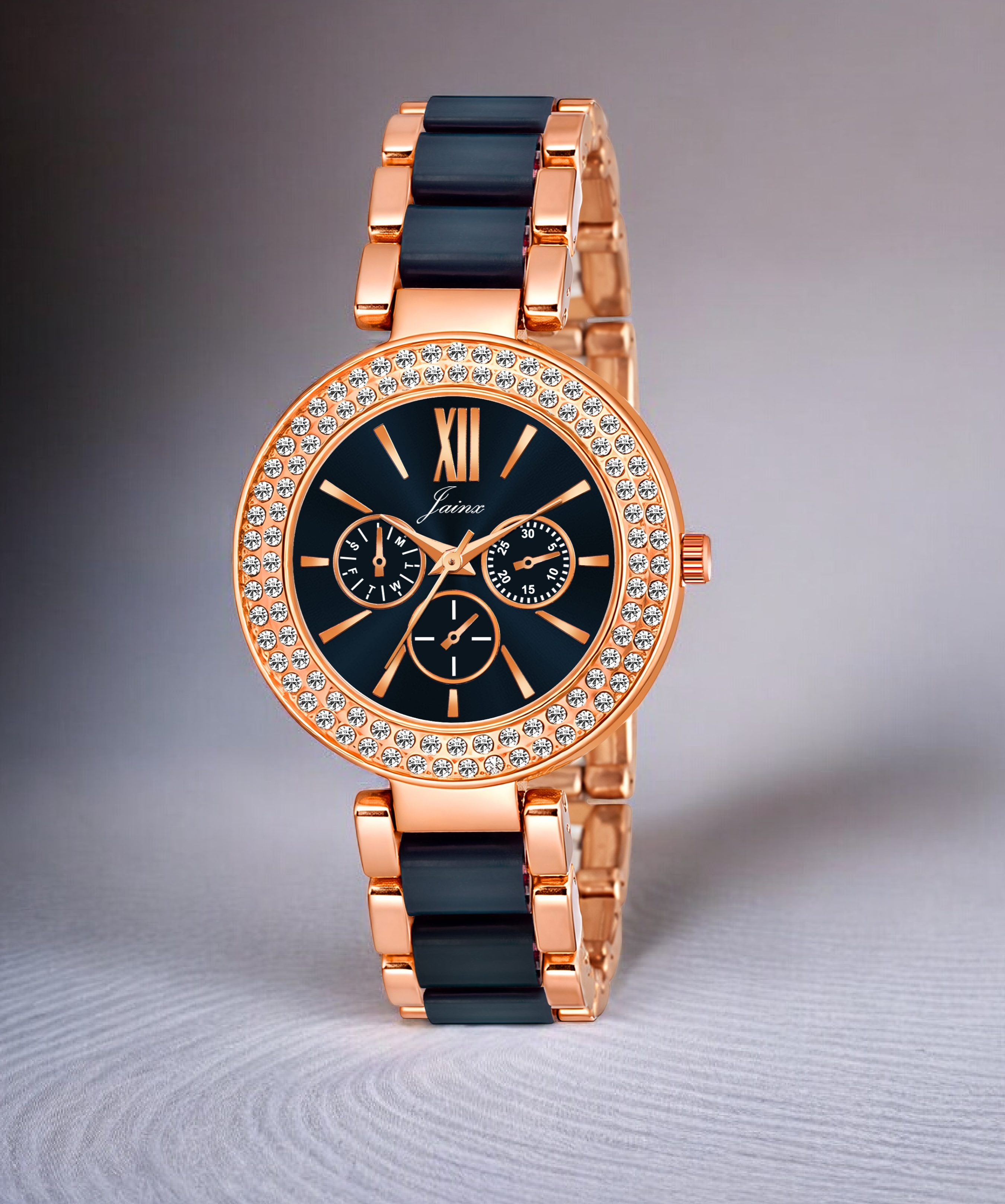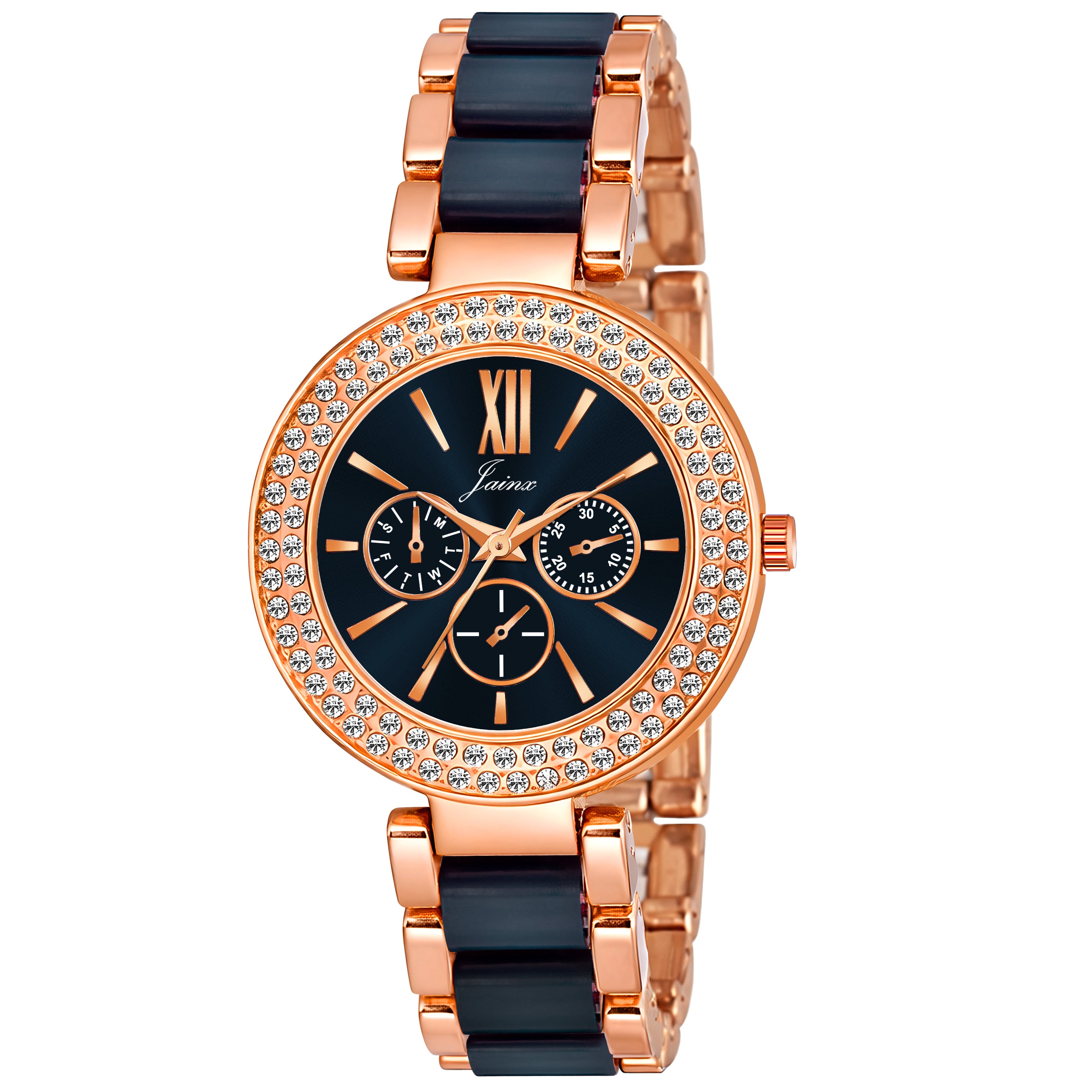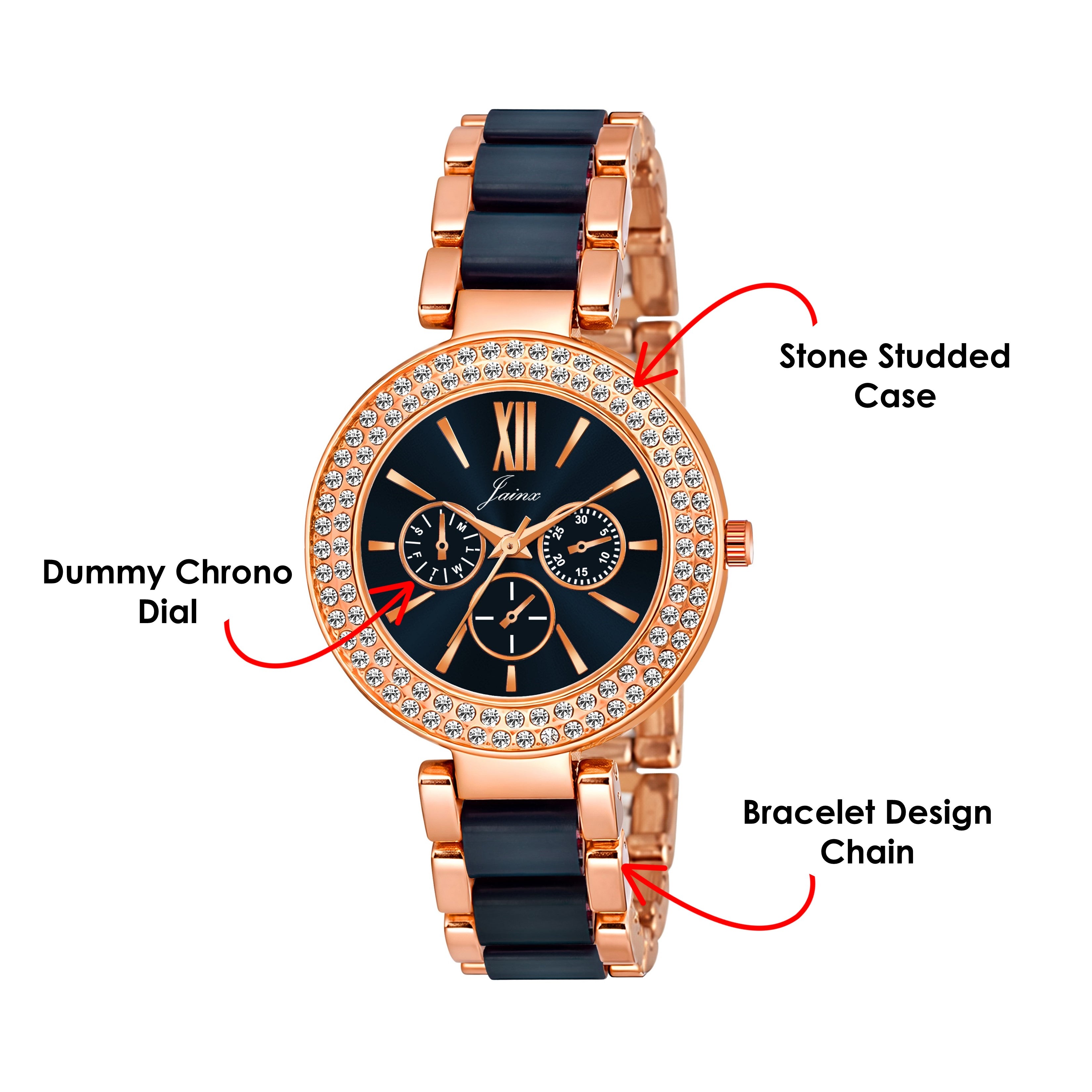 Jainx Rose Gold Bracelet Style Analog Blue Wrist Watch for Women